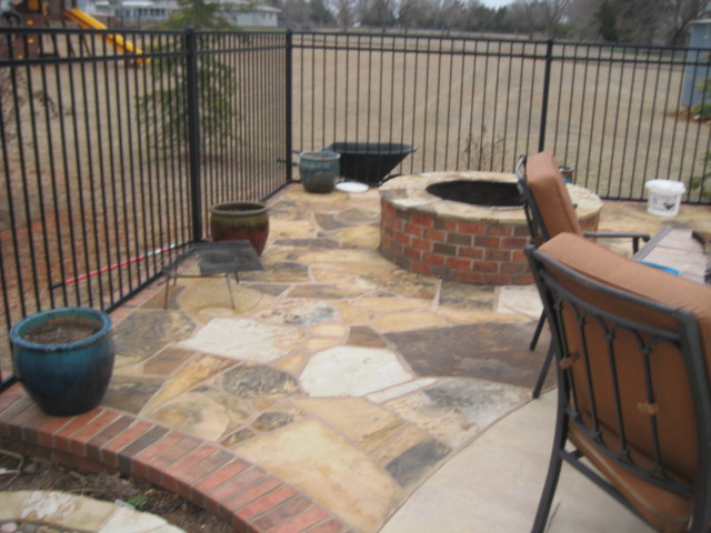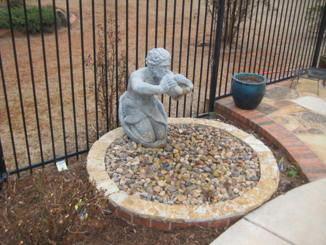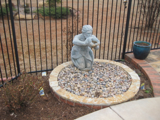 outdoorfireplacewaterfountainimages Fence, Ribbon, and Water Fountain Installed a ground level decorative water fountain, rock walkway, and brick ribbon for an iron fence. Gallery Click Picture to View: Mustang, Oklahoma. Previous Next
